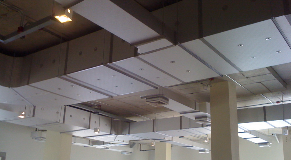 งานออกแบบและติดตั้งท่อส่งลมเย็นขนาดใหญ่สำหรับอาคารโรงงาน หรือห้างสรรพสินค้า โดยทีมช่างชำนาญงานควมคุมงานโดยวิศวกรมืออาชีพ